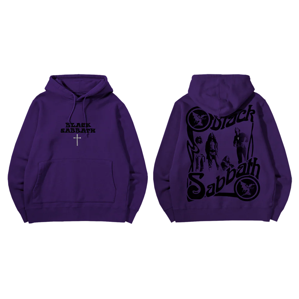 To celebrate the album’s 50th anniversary, this super soft purple hoodie features an image of the band printed on the back. "Black Sabbath" printed on the front with a foil cross.